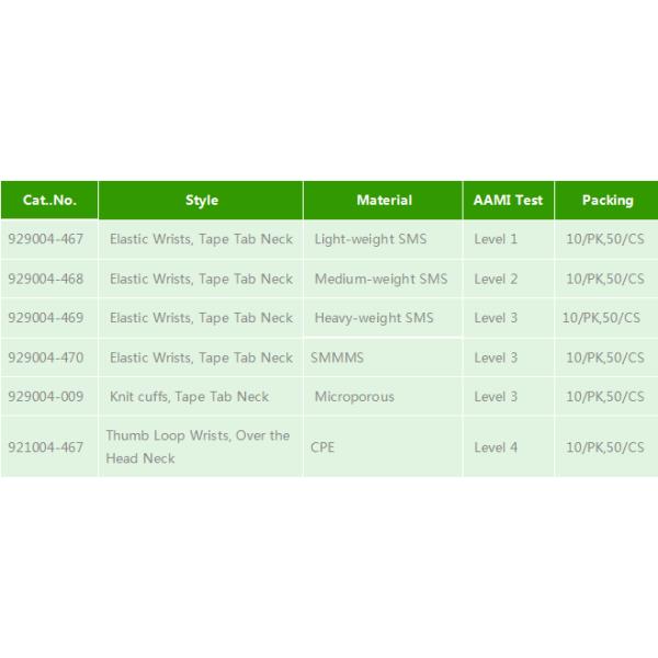 Isolation Gowns meet the test requirements set forth by the Association for the Advancement of Medical Instrumentation(AAMI) PB70. Provide barrier protection based on AAMI guidelines and helps reduce the risk of contamination and transmission of infectious organisms which lead to HAIs. These 4 levels of protection allow you to select the right gown